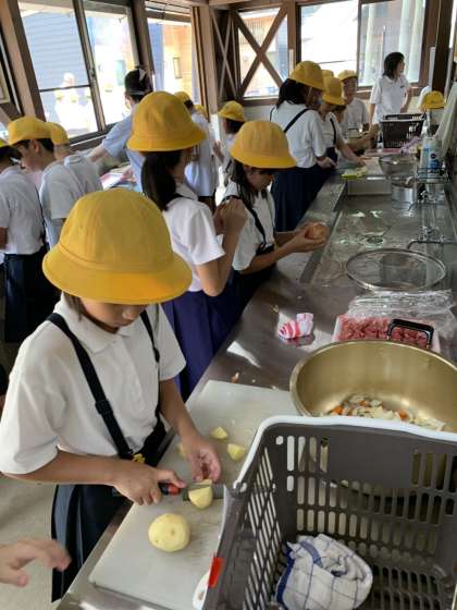 調理開始です。おいしいカレーを作るために材料を切り分けています。