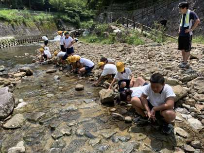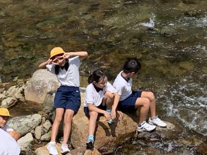 食後の後片付けです。終了後に川に行きました。
