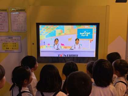 緊張しながらも笑顔いっぱいのちびっ子アナウンサーたち。貴重な体験ができたようです。