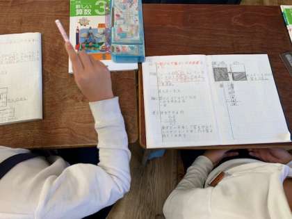 5時限目、元気な明るい声で授業が始まりました。今日のめあては、「はしたの大きさの表し方を考えよう」(小数)です。