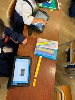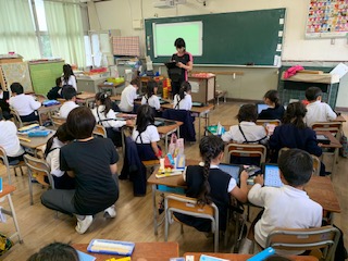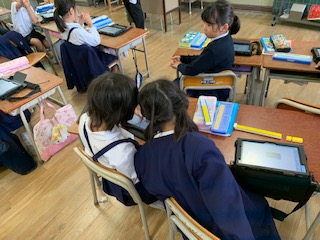 今日は、タブレットを使って授業しました。操作の仕方を一つ一つ覚えていきます。うまくいかない友だちにそっと優しく教えてあげていました。子どもたちの挑戦が始まりました。