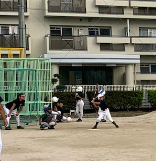 さあ、練習開始です。白球を投げ、打ち、走る、練習に練習です。