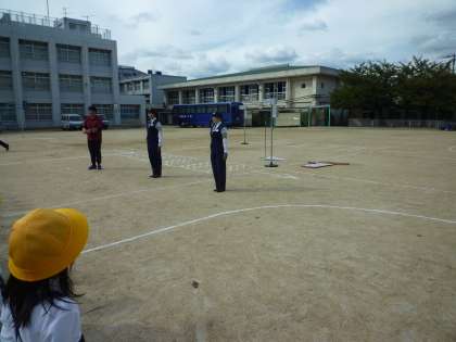今日の5・6時間目に大阪府交通警察のみなさんによる交通安全教室と、大阪府警音楽隊による演奏や演技を鑑賞しました。