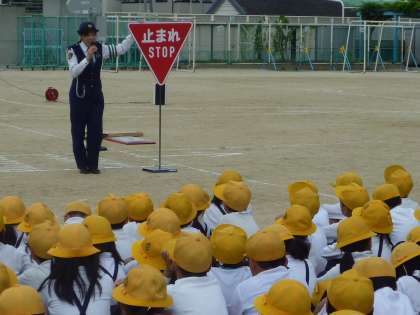 まずは、1〜3年生の歩行安全指導の様子です。
