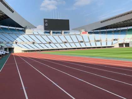 いよいよ後半。ヤンマースタジアム長居にて陸上競技のスタートです。