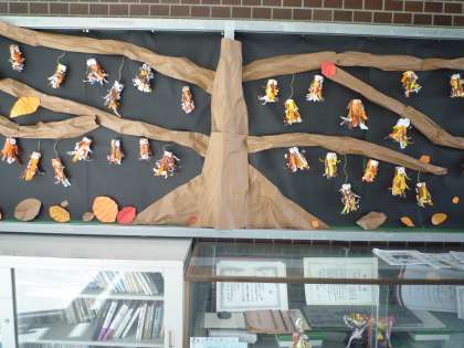 今日から11月、正門の掲示板も11月バージョンになっていました。1年生が作った、かわいらしい蓑虫が、たくさんぶらさがっています。
