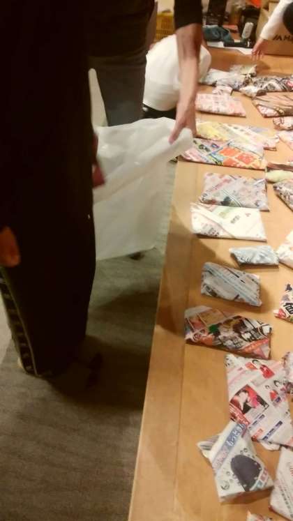 夜のお楽しみ会の様子です。ビンゴゲームをやっています。