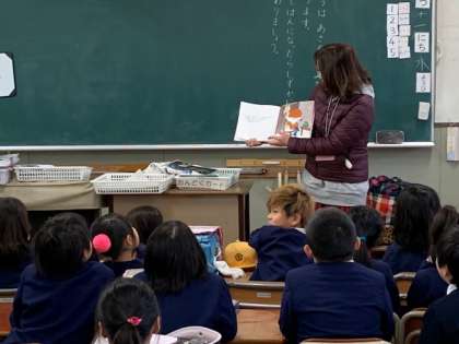 今日も図書ボランティア(きれストーリータイム)の方が来て、読み聞かせをしてくれました。