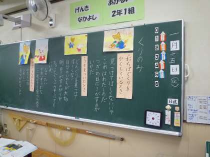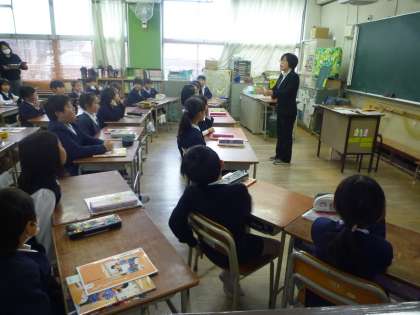15日(水)の5時間目に、2年1組で、〆野先生による、道徳の研究授業が、教育センターより、二上先生をおまねきして、行われました。写真はその時の様子です。