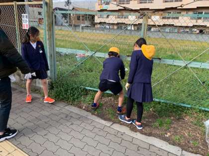植木の中や溝の中のゴミを拾ってまわりました。意外と見えない所にゴミがあることを知り、普段からの生活の仕方を改めて見つめることができました。