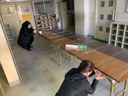 本日、10 時より6年生の卒業をお祝いしての開催となります。また、書留め展の表彰も行います。