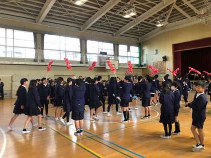 2月27日に行われました。1年生〜5年生の在校生からの感謝の言葉、心こもった贈る歌等、そのあと、6年生からの感謝の言葉、合奏等がありました。講堂の中は、和やかな雰囲気に包まれていました。