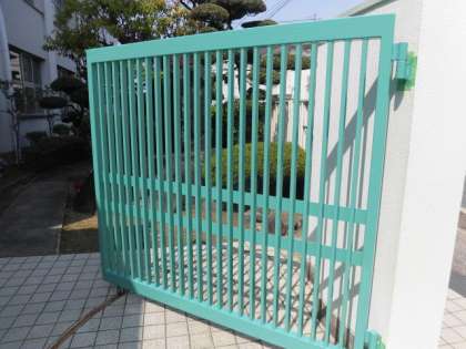 正門の門扉を管理作業員さんが塗装してくれました。