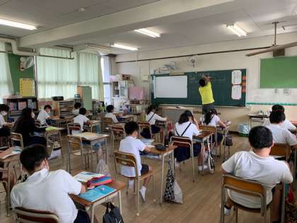 3人の先生が各教室をまわります。数人の先生から授業を受けます。
