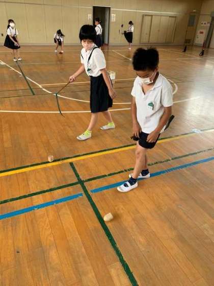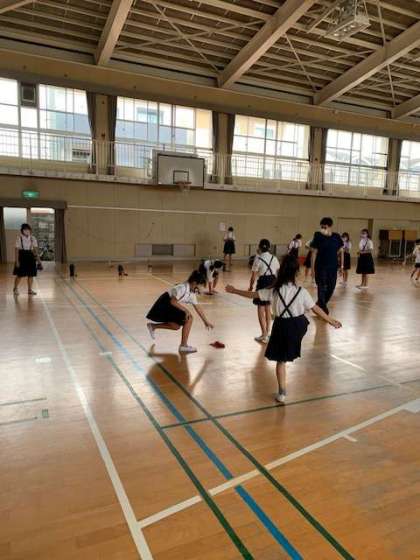 広い体育館で広がって、韓国の遊び(ペンイ、チェギ)をしました。