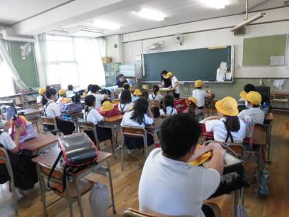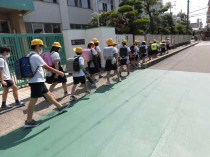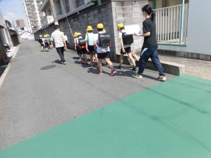 教室で危険場所の確認や交通ルールなどの確認を行い、