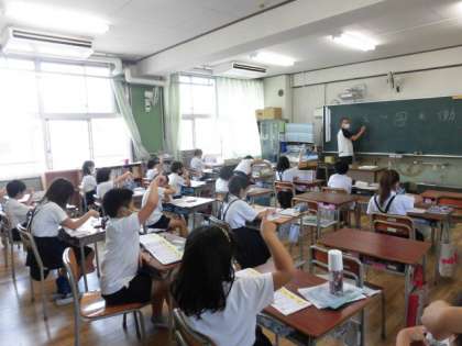 29日(月)、4年生の国語の時間です。漢字の学習です。