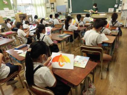 3日(金)、3年生が図工の授業をしていたのでのぞきました。傘を書いて、その傘を切っていました。その傘を使って作品が出来上がります。どのような作品に仕上がるのでしょうか?完成が楽しみです。