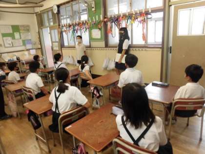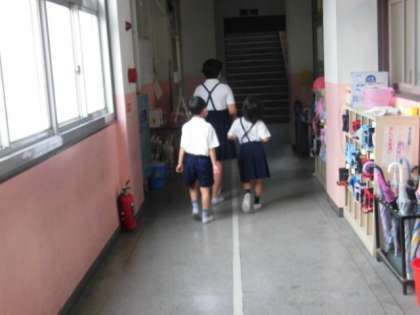 6年生が1年生を迎えに来て活動場所まで案内しています。