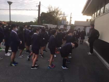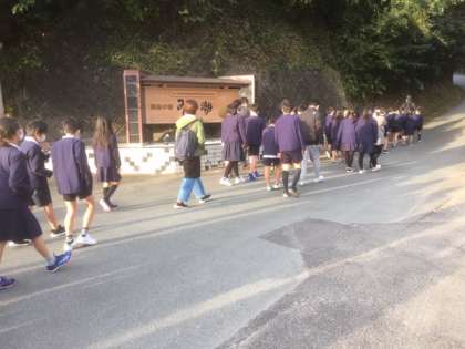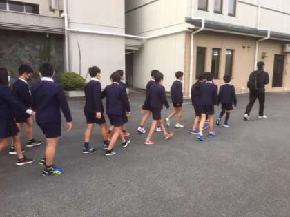 朝の散歩の様子です。体調不良の児童はなくプログラムは進行しています。