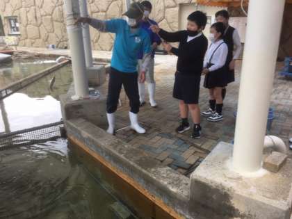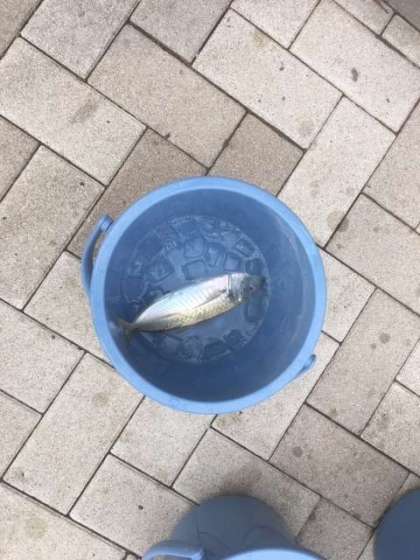 海ほおずきで魚釣りです。大きなアジがつれてます。自分で釣ったアジを干物にします。