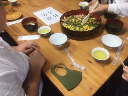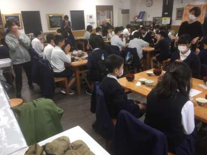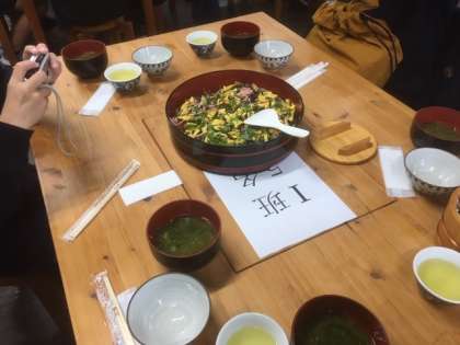 修学旅行最後の食事です。みんなで作ったてこね寿司の昼食です。