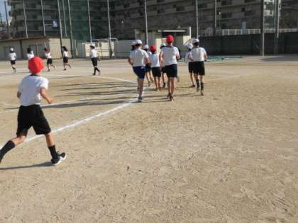 グランドでは、10分間走を行っていました。