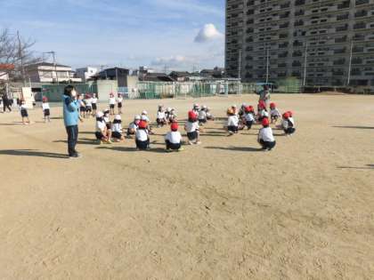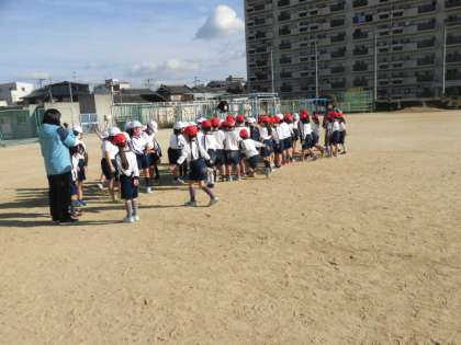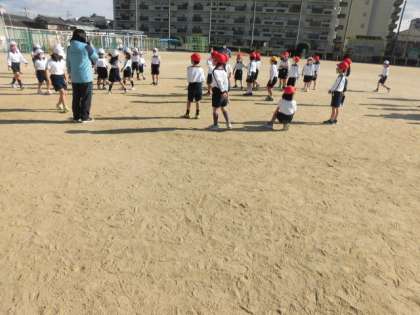 18日(金)、1年生の体育の授業です。ドッチボールをしています。