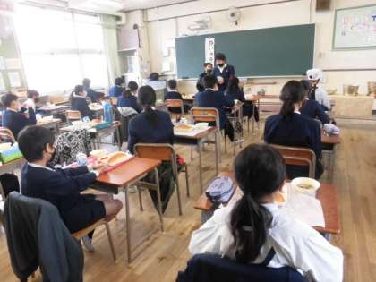 教室では、係がメニューを発表して「いただきます」の号令がかかります。