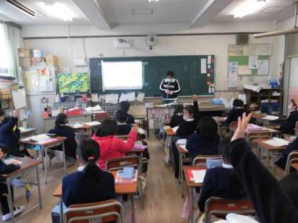 先生の発問に元気よく手が上がります。