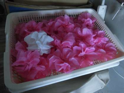 お花紙を使って、クラス全員でお花を作っています。