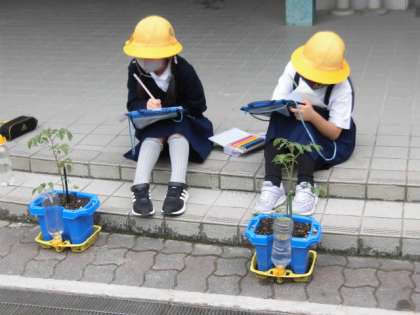 28日(金)、2年生が自分で植えたミニトマトのスケッチを、