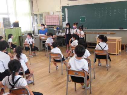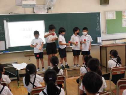 19日(月)、教室を見て回ると、お楽しみ会をしているクラスがありました。担当の子どもがが前に出て話をしています。けん玉の技を披露している出し物がありました。