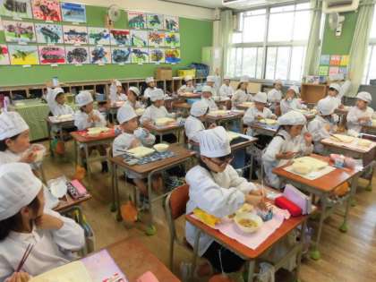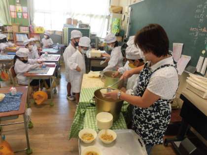 メニューは、鶏肉のしょうゆマヨネーズ焼き、五目汁、切り干し大根のゆずの香あえ、ごはん、牛乳です。