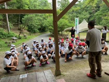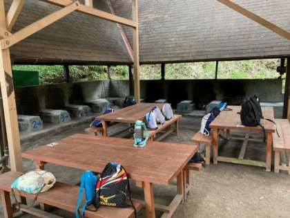 奈良野外活動センターに到着しました。炊事場です。今からカレー作りが始まります。センターの方から説明を聞いています。