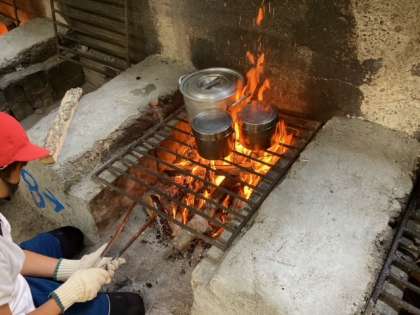 火の勢いも良く、順調に野外炊事が進んでいます。