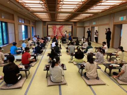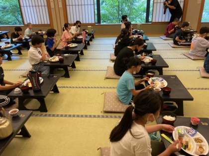 朝食の様子です。係の人からは、この後オリエンテーリングです。頑張ろう!オー!と声がかかっていました。