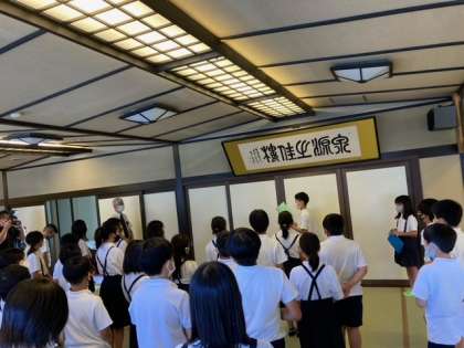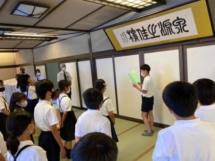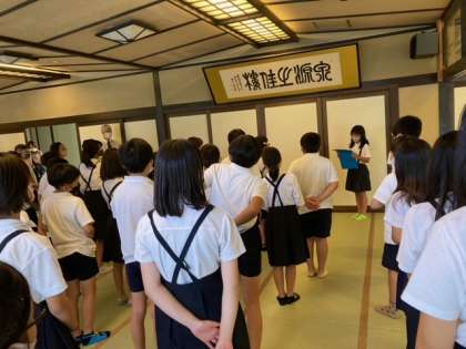 退舎式を大広間で行いました。宿の方から良くがんばりましたと感想をいただき、バスに乗り込みました。