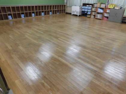 各教室の床にワックスがけを行いました。床がピカピカになりました。