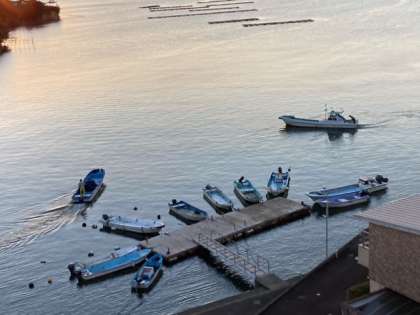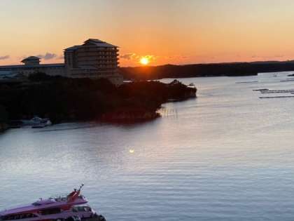 一気に太陽が昇りました。漁へ行くのでしょうか。船も動き出しました。