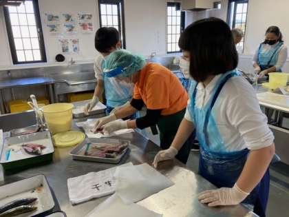 さばいた後は、きれいに洗って塩をして、10分置きます。そして乾かします。