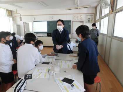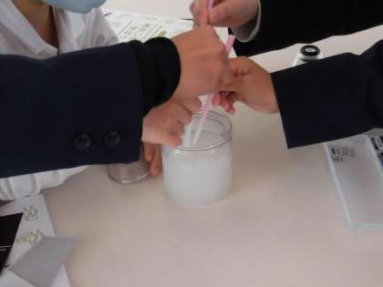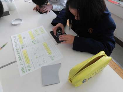 紙を水で溶かしその液体をルーペで観察しています。紙すきを見学して、紙のリサイクルについて学びました。牛乳パックがリサイクルでトイレットペーパーに変わることを聞き児童のみなさんは驚いていました。