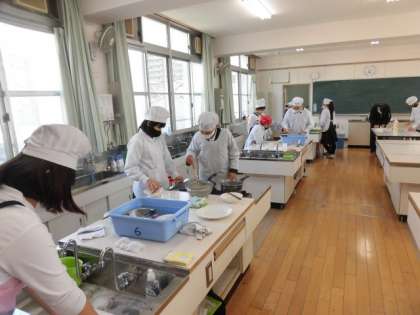 21日(火)、6年生が家庭科室で調理実習をしています。