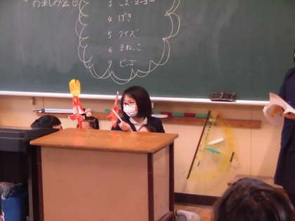 23日(木)、2学期も明日で終わるので、今日はたくさんのクラスでお楽しみ会が行われています。いろいろな出し物が順番に始まっていきます。ピアノやクイズ、ペープサートなど大変面白いです。