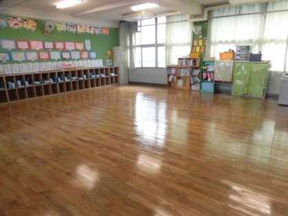 年末を迎え、教室のワックスがけをしているクラスもありました。