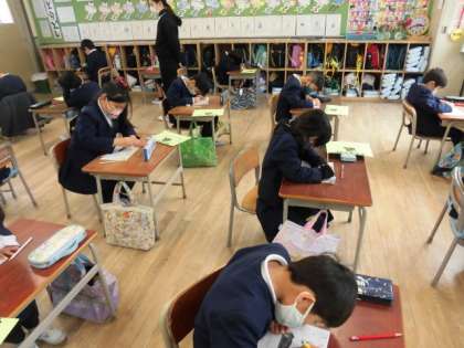 10日(木)、国語の漢字テストを行っています。一生懸命に取り組んでいます。