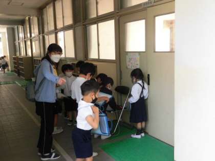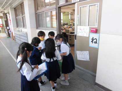 2年生がリーダーとなって1年生を校舎探検に連れて行きます。