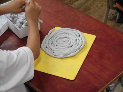 粘土を伸ばして、長いひもを作ろうが、今回の課題です。