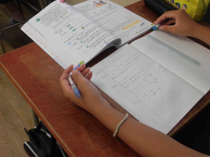 29日(水)、算数の授業です。文字を使って文章題の解答の式が立てられています。
