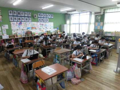 14日(木)、4年生がプログラミングの学習をしています。